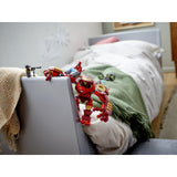 There’s authentic Marvel action when kids place an Iron Man minifigure inside the mega Hulkbuster armor to battle 2 enemy agents. The bad guys have weapons and 1 of them has a jet pack. The Hulkbuster armor has movable limbs and, for extra firepower, kids can put the Rescue minifigure in the built-in shooter turret.